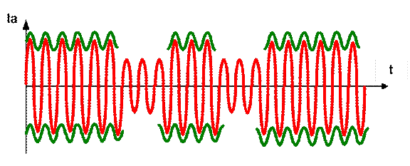 Когда контакты АПС замкнуты антенна передатчика изучает колебания ВЧ. В соответствии с этим от АПС происходит амплитудная модуляция несущей частоты тональными колебаниями, а в момент паузы модуляция отсутствует.