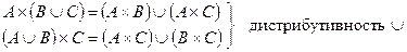 (А ∪ В)∩ С = (А ∩ С)∪(В ∩ С)); (А ∩ В)∪ С = (А ∪ С)∩(В ∪ С)).