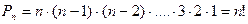 Чтобы установить справедливость этой формулы представим себе, что необходимо заполнить n пронумерованных ящичков n различными шарами по одному в каждый ящичек. Тогда, первый ящичек можно заполнить любым из имеющихся n шаров, второй ящичек - любым из оставшихся n –1 шаров, следующий - любым из оставшихся n –2 шаров и т.д. Перемножая эти числа, мы и получим уже приведенную выше формулу.