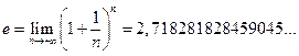 Предел этой последовательности называется числом e. Некоторое количество первых значащих цифр его численного значения приведено выше.