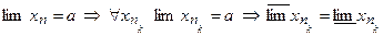 . Тогда смешав элементы этих двух последовательностей получим последовательность, не имеющую предела. Следовательно, если верхний и нижний пределы последовательности не равны между собой, то существует подпоследовательность, не имеющая предела и, значит, предел последовательности не существует.