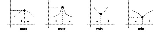 меняет значение с “ + ” на ” – ” то в точке х 0 функция имеет максимум.