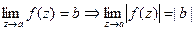 *. Если комплексно значная функция имеет предел, то её модуль также имеет предел и при этом: