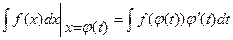 (*) Формула замены переменной в неопределенном интеграле. При этом переход слева направо называется подстановкой, а справа налево – введением нового аргумента.