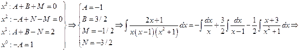 Разложим подынтегральную дробь в сумму простейших дробей: