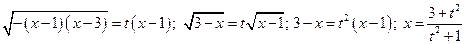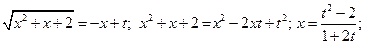 . Знаки плюс–минус выбираются из соображений удобства. Остроумие подстановок Эйлера заключается в том, что для нахождения х получается линейное уравнение.