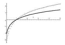 При этом, сплошной линией изображены графики логарифмической функции с основаниями