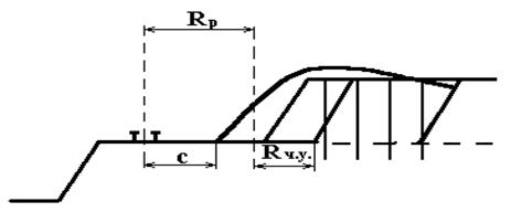 Ширина развала должна удовлетворять рабочим параметрам экскаватора и не превышать некоторой величины В, определяемой по формуле: