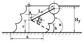 Основными линейными параметрами забоя роторного экскаватора помимо высоты слоя выемки h является высота уступа (Ну), ширина заходки (А), угол откоса уступа.