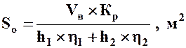 где Vв – общий объем вскрыши, размещаемой в отвале, м3; Кр = 1,1-1,2 – коэффициент разрыхления пород в отвале; h1 и h2 соответственно высота первого и второго ярусов отвала, м; η1 и η2 – коэффициент учитывающий заполнение площади отвала соответственно первым и вторым ярусами (η1 = 0,8 – 0,9; η2 =0,4 – 0,8).