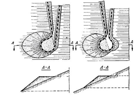 Петлевые съезды располагают в лежачем боку месторождения стационарно, с предварительным устройством на месте петли искусственной горизонтальной площадки соответствующих размеров.
