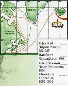 В последующих экспедициях норманны основали в Северной Америке три поселения: Хеллуланд на Лабрадоре. Маркланд на острове Ньюфаундленд и недалеко от нынеш-