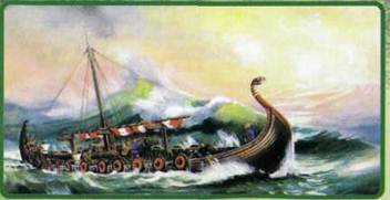 Типичное боевое судно викингов (рис. 27) имело характерные черты обоих ис-