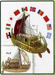 Рис. 1.91. Слева - Тур Хейердал, справа - парусные лодки «Ра» и «Ра-II».