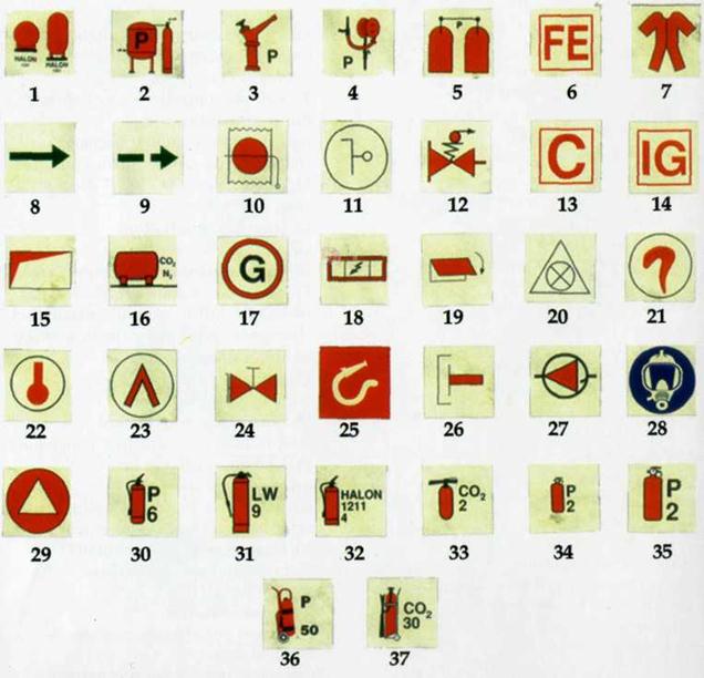 12 - клапаны топливной и масляной системы с дистанционным управлением; 13 - пост управления; 14 - установка инертного газа; 15 - трубопровод высокократной пены; 16 –