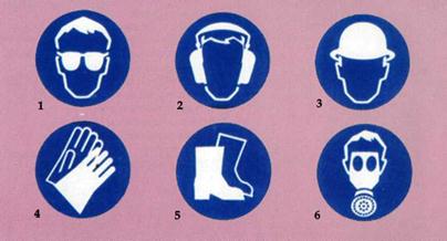 1 – защита глаз; 2 – защита ушей; 3 – защита головы; 4 – защита рук; 5 – защита