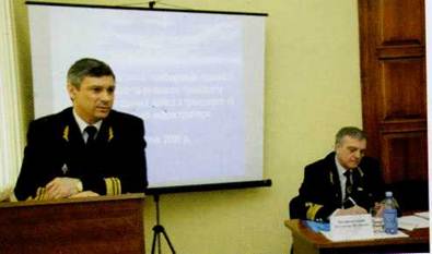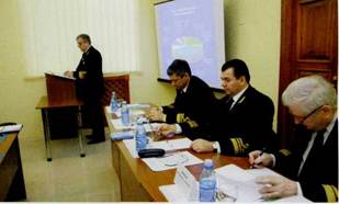 Выступает Тихонов Илья Валентинович – начальник Инспекции по контролю качества подготовки моряков, выпускник судоводительского отделения Херсонского мореходного училища
