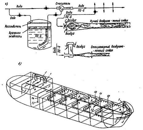а - схема получения пены; б - система воздушно-механического пенотушения на танкере: