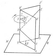 Одним их основных измерений в геодезии является измерение угла. Так, например, создание плановых геодезических сетей, топографических карт и планов, процесс строительства и эксплуатации зданий невозможны без проведения угловых измерений. Пусть АВС (рис.13) угол местности, стороны которого не лежат в горизонтальной плоскости. При этом можно построить проекцию этого угла на горизонтальную плоскость путем проекций сторон ВА и ВС на горизонтальную плоскость. Таким образом, горизонтальный угол β – это угол на горизонтальной плоскости, соответствующий двугранному углу, образованному двумя вертикальными плоскостями, проходящими через стороны ВА и ВС. Мерой того же двугранного угла будет являться любой другой плоский угол, вершина которого находится на ребре двугранного угла, а стороны – в горизонтальной плоскости. Поэтому горизонтальный угол β можно измерять с помощью круга, разделенного на градусы