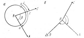 Перед измерением горизонтального угла необходимо установить теодолит в рабочее положение. Для этого необходимо выполнить центрирование прибора, затем привести плоскость лимба в горизонтальное положение и установить зрительную трубу для наблюдений. Центрирование теодолита заключается в установке центра угломерного круга над вершиной измеряемого угла. Центрирование выполняют с помощью отвеса, перемещая штатив вместе с теодолитом и добиваясь того, чтобы отвес находился над точкой, обозначающей вершину измеряемого угла. После этого, нажимая ногой на упоры, закрепляют штатив, наблюдая за тем, чтобы головка штатива была около горизонтального уровня. Окончательного совмещения острия отвеса с вершиной угла достигают перемещением теодолита по головке штатива. После этого закрепляют становой винт. Теодолиты, имеющие оптический центрир, устанавливают над вершиной угла с помощью зрительной трубы, наводя её на точку, обозначающую вершину измеряемого угла. Приведение плоскости лимба в горизонтальное положение выполняется с помощью подъемных винтов при подставке теодолита и уровня, расположенного на алидаде горизонтального круга. Установка зрительной трубы для наблюдений состоит из установки её по глазу и по предмету. Измерение горизонтального угла при инженерных работах чаще всего производится способом приемов. Для этого после приведения теодолита в рабочее положение закрепляют лимб и наводят вращением алидады зрительную трубу на правую точку измеряемого угла (рис.20). Взяв отсчет по горизонтальному кругу, вращают алидаду, наводя зрительную трубу на левую точку измеряемого угла, и берут новый отсчет по горизонтальному кругу. Величина измеряемого угла определится как разность между отсчетами правой и левой точки. Выполненные действия составляют один полуприем. Для уменьшения погрешности измерения измеряют тот же угол вторым полуприемом. Для этого переводят трубу через зенит и изменяют положение лимба, смещая его на 1-2О.
