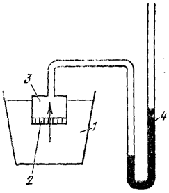 Рис. 23. Схема осмометра Пфеффера: 1 — сосуд с растворителем; 2— мембрана; 3 — ячейка с раствором; 4 — манометр