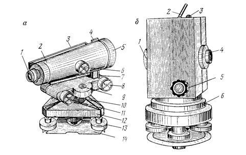Нивелир Н-3 (рис.) состоит из зрительной трубы, на корпусе которой установлены коробка цилиндрического уровня и мушка для приближенного наведения зрительной трубы на рейку. Оптическая система зрительной трубы нивелира по аналогии с трубой теодолита имеет окуляр, фокусирующую линзу с кремальерой и объектив. Кроме этого зрительная труба нивелира оснащена закрепительным и наводящим винтом.