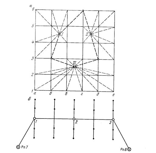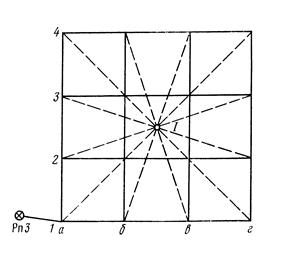 Рис. Схемы нивелирования поверхности по крадратам с трех точек и по магистралям
