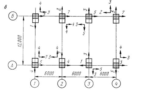 Величина и направление смещения осей колонны в нижнем сечении относительно разбивочных осей, мм