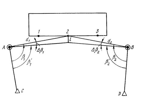 На схеме изображены опорные точки пунктов А и В, задающие створ наблюдений и контрольные точки 1, 2, 3, 4 находящиеся в стенах здания. В каждой контрольной точке размещают подвижную визирную марку, снабженную наводящим винтом. При наблюдениях за горизонтальными перемещениями сооружения необходимо определять величины отклонений контрольных точек от створа АВ с помощью подвижной марки. При наблюдениях визирную цель марки наводящим винтом перемещают до совмещения вертикальной оси этой цели с визирной осью теодолита. Перед наблюдениями устанавливают теодолит в точке А и визируют его зрительную ось на точку В, задавая таким образом соответствующий створ. Взяв отсчет по шкале марки, получают численное значение величины сдвига контрольной точки от створа линии. В случае установки в контрольных точках здания неподвижных марок, задача определения горизонтальных деформаций и перемещений контрольных точек может быть решена путем измерения малых углов между линией створа здания и направлением на контрольную точку. Для этих измерений необходимо использование высокоточных приборов. При этом кроме численных значений величин малых углов, необходимо измерять соответствующие расстояния от точки А до контрольных точек. При невозможности закрепления створа на здании или сооружении для измерения перемещений применяется метод отдельных направлений.