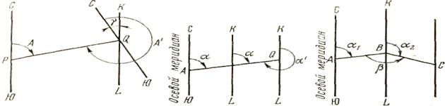 Азимут А направления PQ называется прямым, а противоположного— обратным (рис. 9.а):
