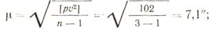 Пример. Угол измерен три раза различным числом приемов. Определить вероятнейшее значение угла, среднюю квад-ратическую ошибку единицы веса и среднюю квадратическую ошибку общей арифметической средины.