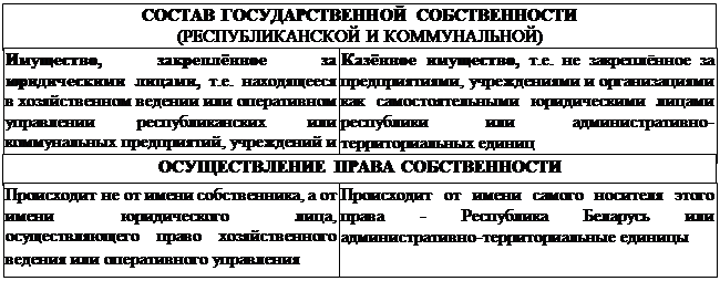 Ст. 13 Конституции Республики Беларусь гласит, что собственность может быть государственной и частной. Государство предоставляет всем равные права для осуществления хозяйственной и иной деятельности, кроме запрещенной законом, и гарантирует равную защиту и равные условия для развития всех форм собственности.