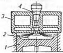 1 – поршень; 2 – камера сгорания; 3 – головка цилиндра; 4 – форсунка