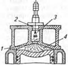 Рис. 4.2. Схема разделенной камеры сгорания предкамерного дизеля: 1 – соединительный канал; 2 – форсунка; 3 – предкамера; 4 – основная камера сгорания