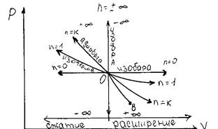 | Процессы, расположенные выше адиабаты, протекают с подводом тепла, а расположенные ниже – с отводом тепла. (см. рис. 6). |