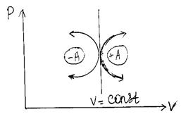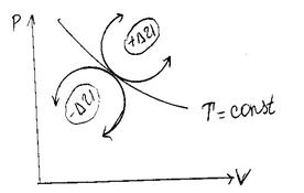 | Процессы, расположенные выше изотермы, протекают с увеличением внутренней энергии, а процессы расположенные ниже изотермы – с уменьшением внутренней энергии (см. рис. 5.) |