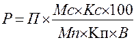 где: П – план производства готовой продукции; Мс – молекулярная масса сырья; Кс- содержание полезного вещества в сырье, %; Мп – молекулярная масса готового продукта; Кп – содержание полезного вещества в готовом продукте, %; В – плановый выход готового продукта из сырья, %.