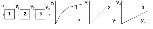 Обычно нелинейная характеристика не может быть выражена какой-либо математической зависимостью и ее приходится задавать таблично или графически. Зная статические характеристики отдельных звеньев, можно построить статическую характеристику САУ (рис.15, 16).