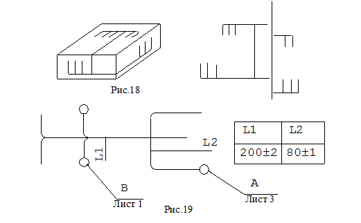 v При условном изображении размеры отдельных участков можно показывать без выносных линий (рис.17)