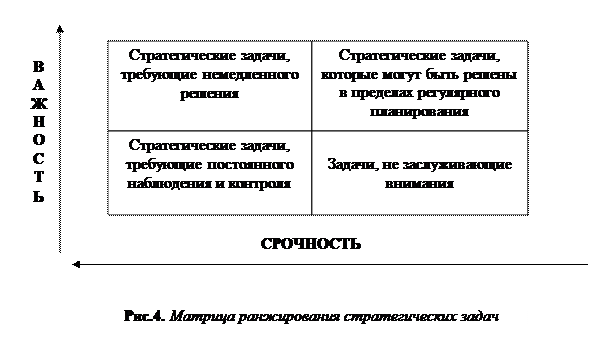 2) Оценивается важность задач и степень срочности их решения. По этим критериям выделяются 4 категории стратегических задач: