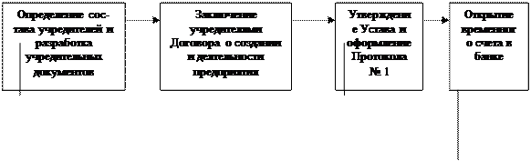 Прежде чем осуществится I этап необходимо предприятие создать. В соответствии с российским законодательством после принятия решения о создании нового предприятия предстоит пройти ряд обязательных этапов. Порядок прохождения этих этапов зависит от организационно-правовой формы предприятия. Наиболее типовой порядок создания нового предприятия можно проследить на рис. 1.6.