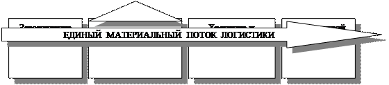 В экономической логистике в качестве основного применяется понятие материального потока, при этом все стадии производства, транспортировки, сбыт продукции рассматриваются в виде сплошного процесса (Рис. 3.3.).