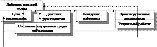 Специалисты по управлению полагают, что наиболее эффективным моментом работы организации являются умелые, продуманные действия его руководителей. Квалифицированные действия руководства дают возможность направить в нужное русло поведение работников, создать необходимую производственную ориентацию и возбудить мотивацию их действий, содействовать эффективной работе. В результате производственная деятельность коллектива приобретает нужную целеустремленность, организованность и продуктивность. Таким образом, успех приходит тогда, когда качественное руководство порождает активное поведение работников, а их взаимодействие проявляется в эффективной производственной деятельности.