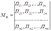 Где МК – матрица значений показателей поставки в k -ой группе показателей, k= 1 ,l;