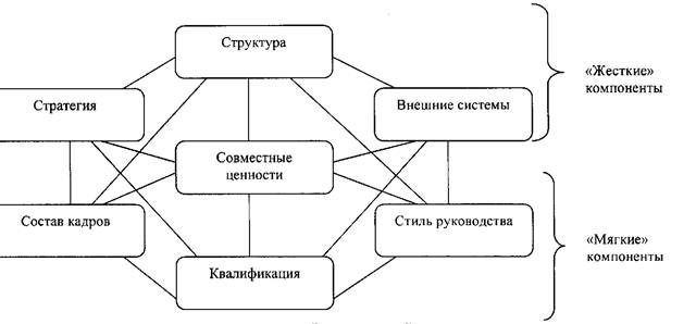 5. Комплексный - любая система управления является совокупностью взаимосвязанных частей. Американцы Питерс, Уотермен в книге «Поиски эффективного управления» предложили модель семи S.