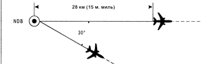 b) NDB: оба воздушных судна находятся на линиях пути приближения к NDB или удаления от NDB, расходящихся под углом не менее 30°, и по крайней мере одно воздушное судно находится на расстоянии 28 км (15м. миль) или более от этого средства;