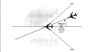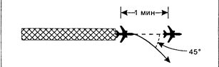 | а) 1-минутный интервал между вылетающими воздушными судами, следующими по линиям пути, расходящимся под углом не менее 45° | б) 2-минутный интервал между воздушными судами, следующими по одной и той же линии пути |