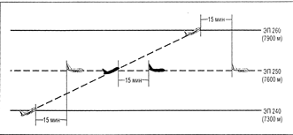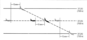 б) одно ВС выдерживает определенный эшелон в период времени, когда отсутствует вертикальное эшелонирование; и