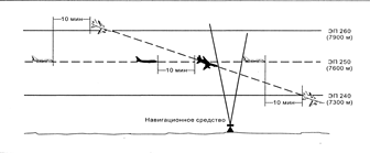 б) 10 мин при отсутствии вертикального эшелонирования, если навигационные средства позволяют часто определять местоположение и скорость.