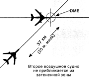 При использовании DME: Интервал 37 км (20 м. миль) между ВС на пересекающихся линиях пути и на одном эшелоне. Интервал 19 км (10 м. миль) между ВС на пересекающихся линиях пути и на одном эшелоне.